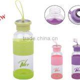 Single Layer Glass Bottle With Silicone Grip & Strap for Promotion