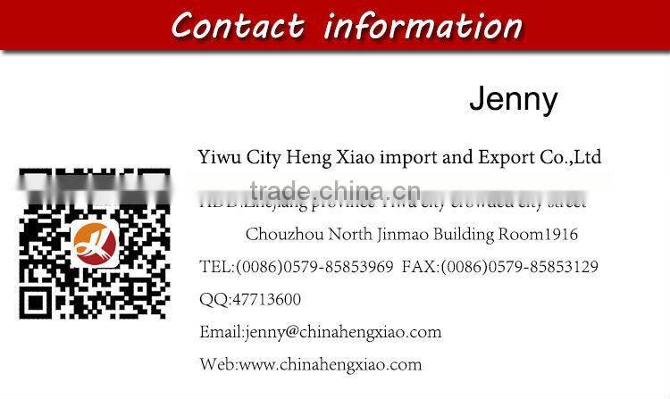 Yiwu City Heng xiao import and Export Co.,Ltd is located in the famous international trade city in the world—Yiwu,have the right to import and export registration of People's Republic of China Ministry of Commerce.Although the company has only just set up,but the team has nearly 10 years of experience in the import and export, please be sure to believe that our ability to work and business experience. Every powerful companies are slowly from small companies to grow up, we hope to get your support, and double cherish every opportunity to cooperate with you, looking forward to win-win with you,believe that we can become the best trade partner!