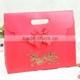 Custom Made Red Gift Paper Bag With Silk Ribbon&low Price From Guangzhou