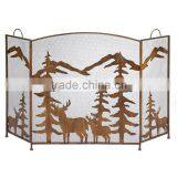 Wrought Iron Rustic Forest Folding Mesh Fireplace Screen