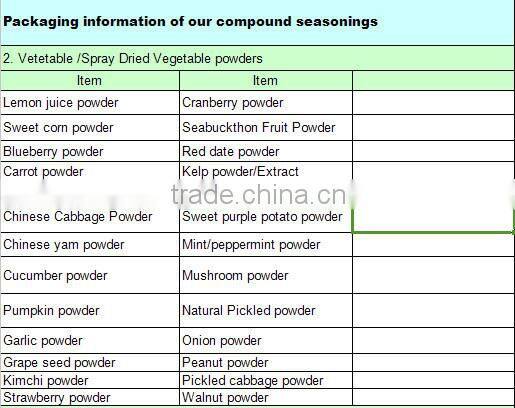 Salion is a manufacturer specialized in natural plant extracts, compound seasonings& condiments and food ingredients.We are located in Beijing and now have ISO9001, HACCP, HALAL certification. Our products include Japanese seasonings, traditional Chinease seasonings, seasoning powder, fruit powders.