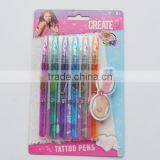 5pcs Glitter Tattoo Gel Pen With Tattoo Stencil