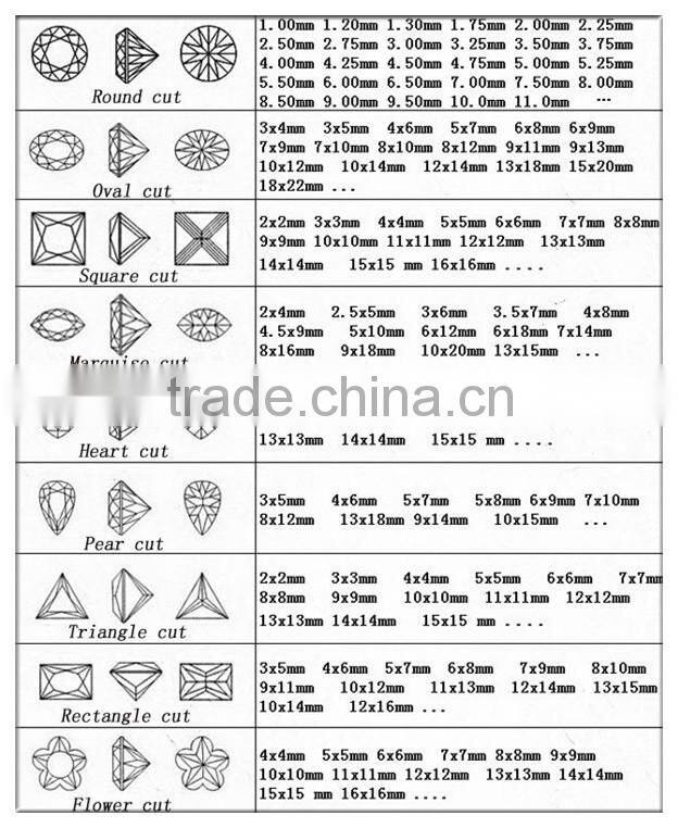 | Shape | Cushion,Heart,Marquise,Oval,Pear,Rectangle,Round,Square,Star,Triangle,Trapezoidal And Special Shapes. |