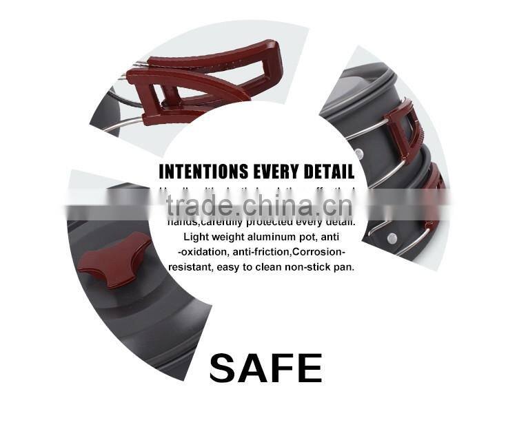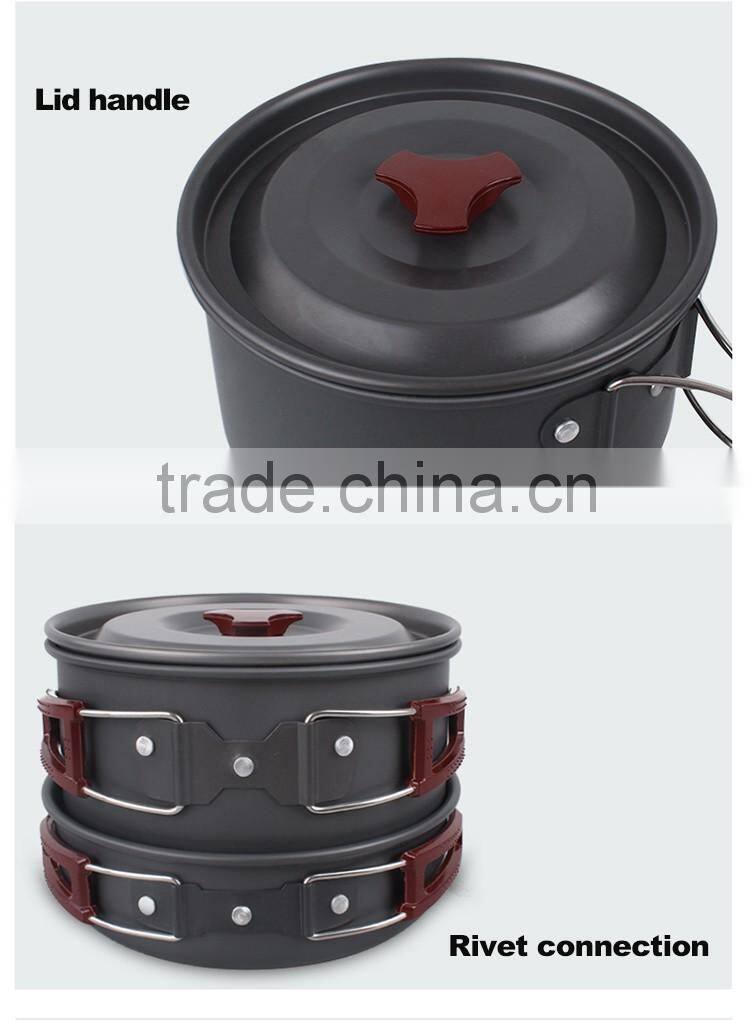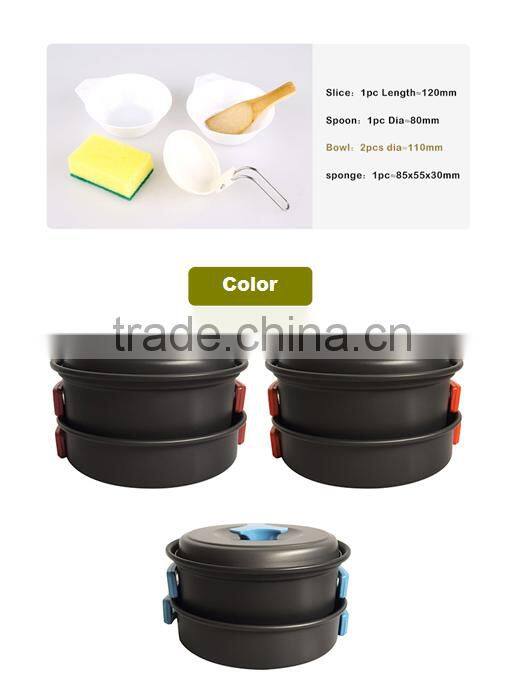 2016 Hot Sale Outdoors and Camping Portable Anodized Aluminum Cookware Sets Non Stick