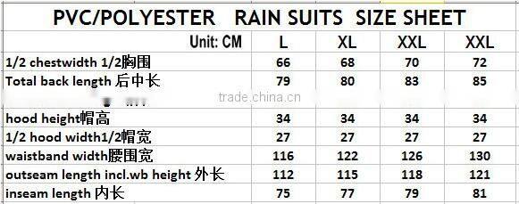 YANLI 100%waterproof, Polyester Pvc Rainsuit/raincoats for Adult