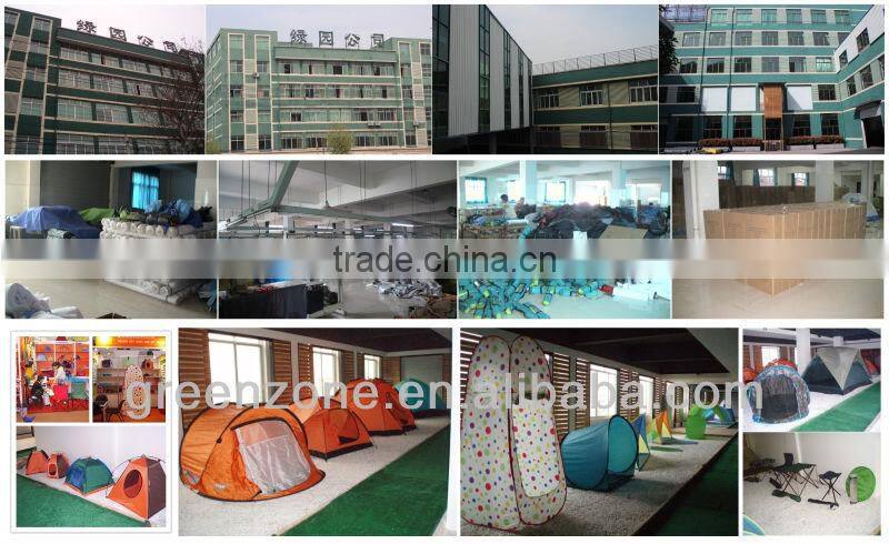 Zhejiang Wuyi Green Zone Co., Ltd. is a tent factory , Our mian products including camping tents ,beach tents,children tents ,pet tents,sleeping bags ,camping chairs ,camping tables, pop up hampers and picnic basket.