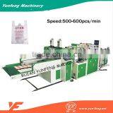 The newly designed ultra high speed vest bag making machine for the production of spceially designed T-shirt bags,dual-channel ultrahigh-speed production (there is no printed or printed),easy to operate,the yield of mind.