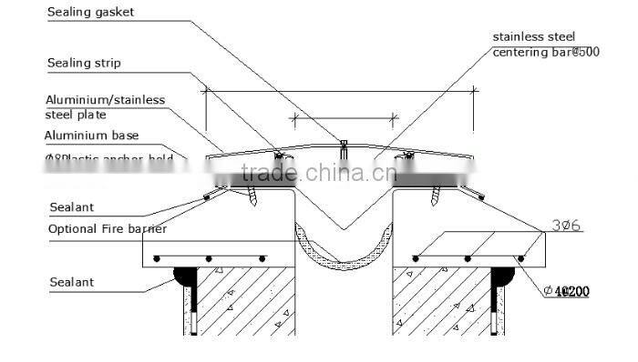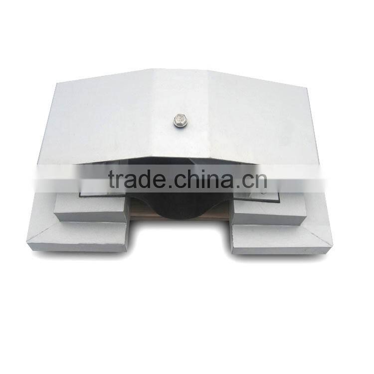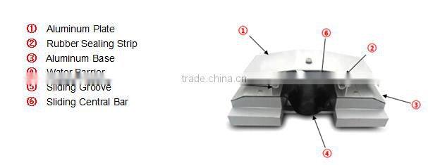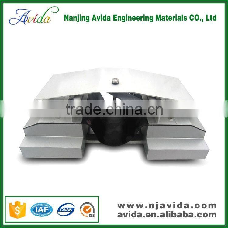 AWGZ is a roof expansion joint covering system. It consists of an aluminum top plate, sliding bar, aluminum bases, water barrier and essential other accessories. Comparing with elastic rubber sealing, metal expansion joint cover enjoys long-standing performance. This model is widely applied in cement rooftop construction.