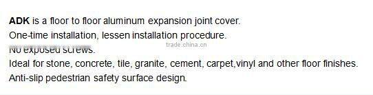 AVIDA Interlock Extrued Aluminum Expanion joint Cover for Concrete adopts snap- fit design. This makes it easy to install. Nice flexibility and decoration are its two main advantages.