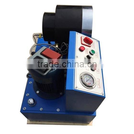 Hose crimping machine mainly by withholding mechanism, motor, gear pumps, control valves and tank components. Suitable for mechanical engineering in the high-pressure hose assembly with hold processing, but also with hold two-way elbow, elbow and large shaped head. Hose crimping machine is a metal fitting through the hydraulic machinery and the corresponding mold with a high pressure hose withhold closely together to prepare a high-pressure hose and fluid connectors, referred to as high-pressure hose assembly. High-pressure hose assemblies are widely used in oil, coal, aerospace, construction machinery, agricultural machinery and other industries etc.
