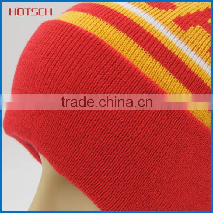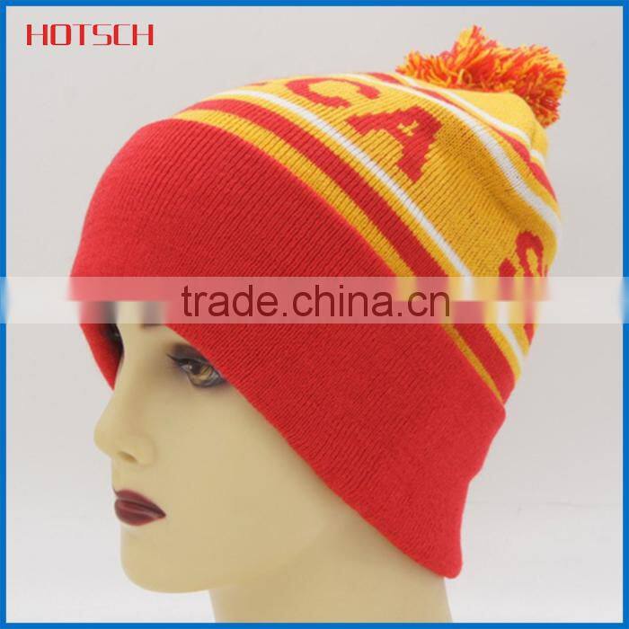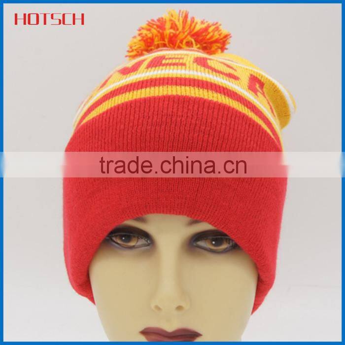 100% Acrylic Fashion Custom Red Knit Pom Beanie