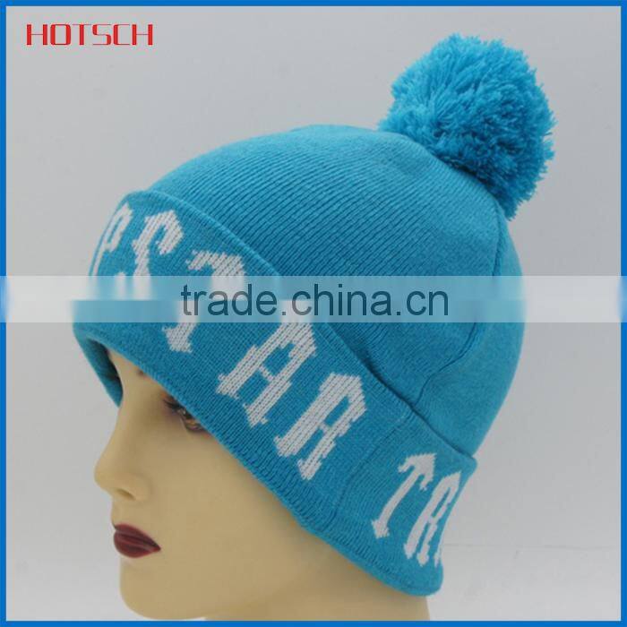 Home > Products > winter beanies > Blue Cheap Custom Beanie Top Ball