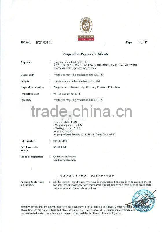 Low Price Completely Waste Tyre Recycling Equipment Meet BV Certification