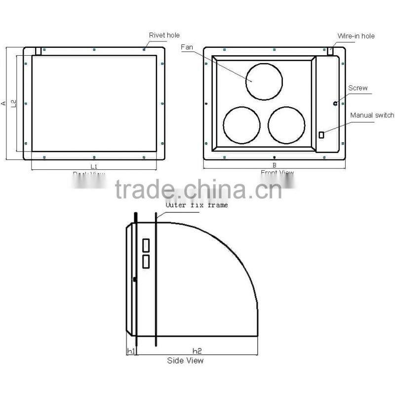 l Air-outtake unit can use nature exhaust method, without DC axial fan. Choose the number of exhaust hole based on requirements, 2 or 4 or 6.