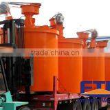 Mixing barrel is a necessary set that mix pulp and medicine evenly by the force of rotating impellers drove by motor to increase the reaction time and quality. This type of mineral barrel is suitable to selected mining and various of chemical industries. Mixing barrel is mainly used in all kinds of metal mining industry for mixing materials and medicine before flotation. It is can also be used to mix non-metallic minerals. Mixing barrel is suitable to the materials whose concentration is not more than 30% and whose granularity is less than 1mm. besides, it looks like a flat barrel with helical runners, which can move and mix materials, in it.