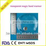 1. Hold the bag with one hand while press the hot button disc several times inside the bag with the pollex and forefinger of your another hand. The liquid shall turn to solid and release heat soon.