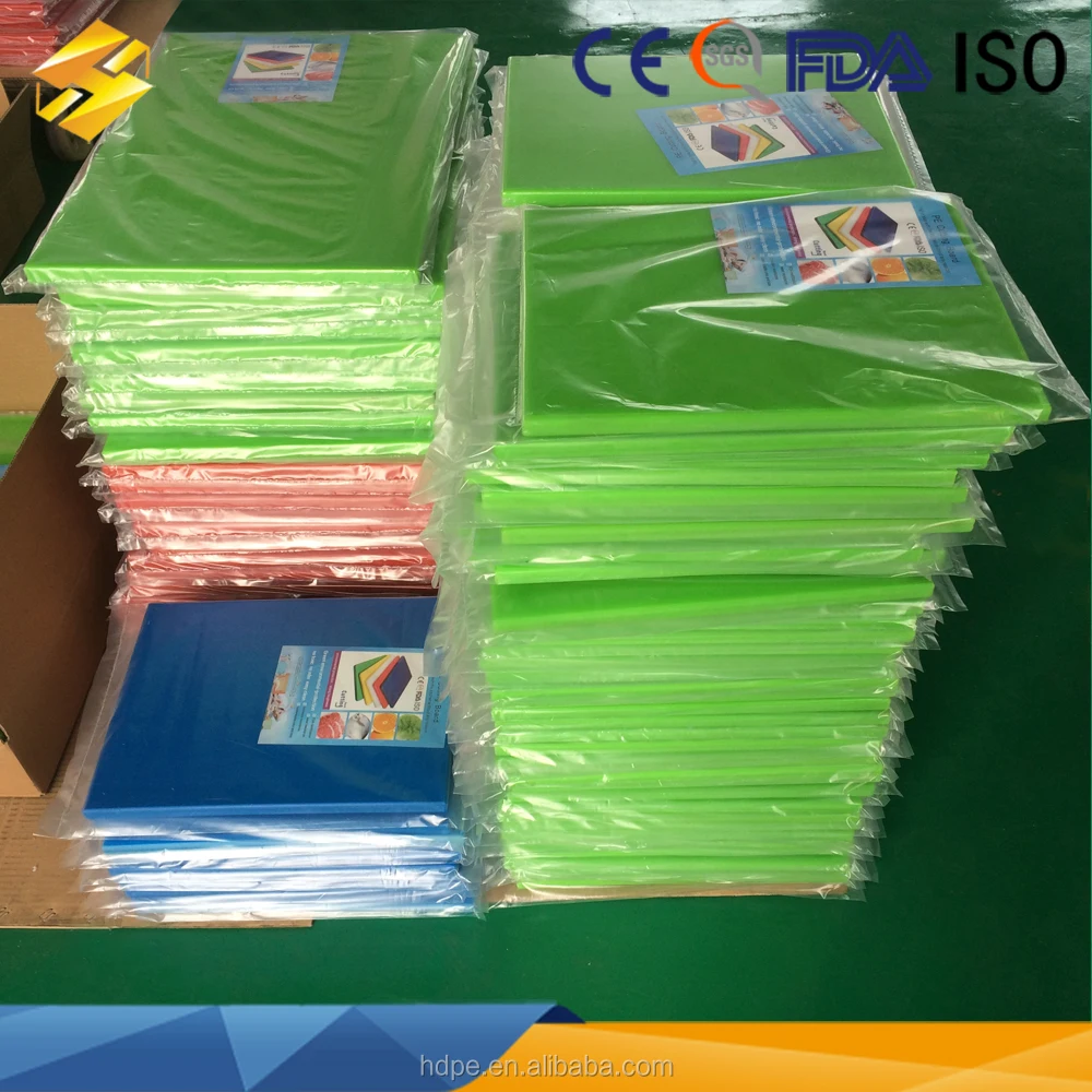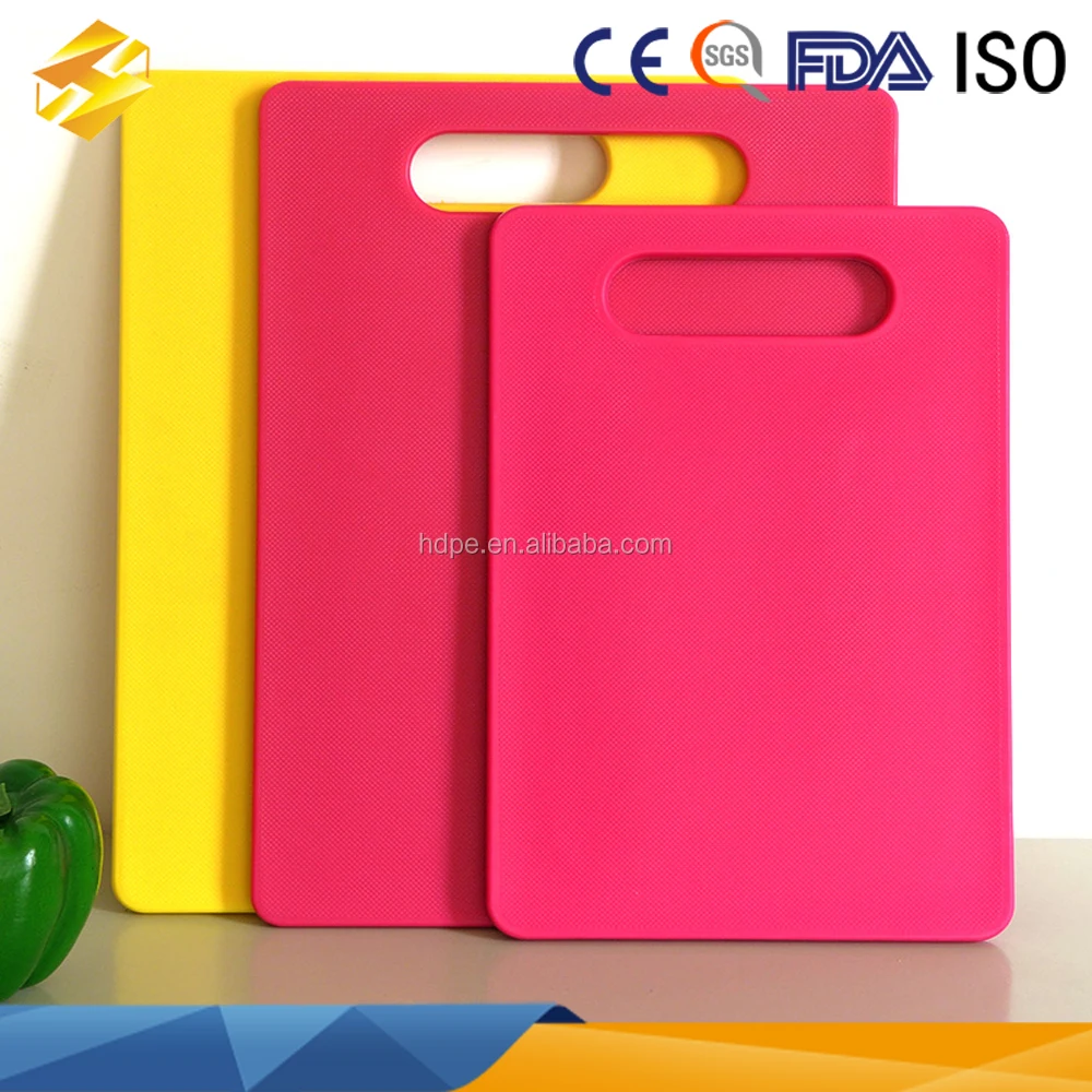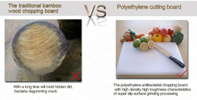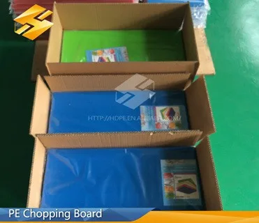 Plastic pe cutting board china supplier overcome all the disadvantages of the traditional plastic and wooden chopping boards, such as crazing, distortion, being liable to generate bacteria and inconvenience for washing. Plastic PE cutting board are more strong in toughness than traditional ones and resistant to cutting stains, crazing, distortion, chopping or rotting. These advantages of plastic PE Cutting Board let them have longer service life. Plastic kitchen Cutting Board is with high quality and low price. Foo