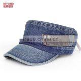 Fashion Washed Jean Flat Military Hat