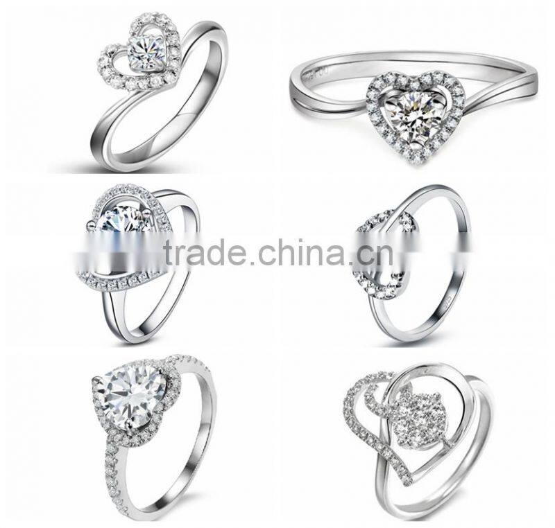 Prong Setting Heart Shape Silver Diamond Wedding Ring Fashion Ring With Big Stone