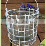 Wholesale Colorful Iron Basket With Handle Glass Inside Candle Holder