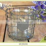 2015 New Product Iron Basket Glass Candle Holder for Home Decoration