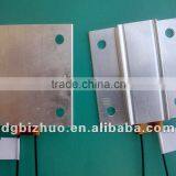 This product is safety.It has high power,high reliability,wind-blowing free running and wide temperature range for application.(ptc heater part,heater element) PTC aluminum heating element is a new type of flame PTC heater with high power.To produce it,the radiating part,which can be the metal or ceramic plate, is housed or glued onto the PTC heating cores.