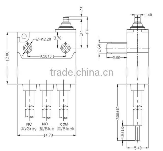 Waterproof Micro Switch Limit Switch With Lever and Right Side Balck Grey Wire Leads Microswitch