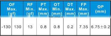 | Rating | 0.1A /125VAC; 3A/ 12VDC ; 0.1A /250VAC; 0.1A/ 48VDC u 1E5. | |