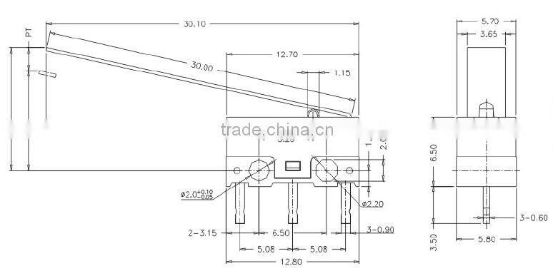 - High Lifespan KW2-3 Series KW2-3-02P-30-5 Micro Switch Long Handle Small Micro Action