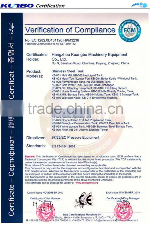 Hangzhou Kuangbo Machinery Equipment Co., Ltd located besides beautiful Fuchun River, is a production enterprise with multi-functions, including research and design, manufacture and installation, management and marketing as well as technique consult and service. For years we devoted ourselves to beer-making, pharmaceutical, dairy, food, beverage and chemical industries. Our products conform to GMP and FDA standard.