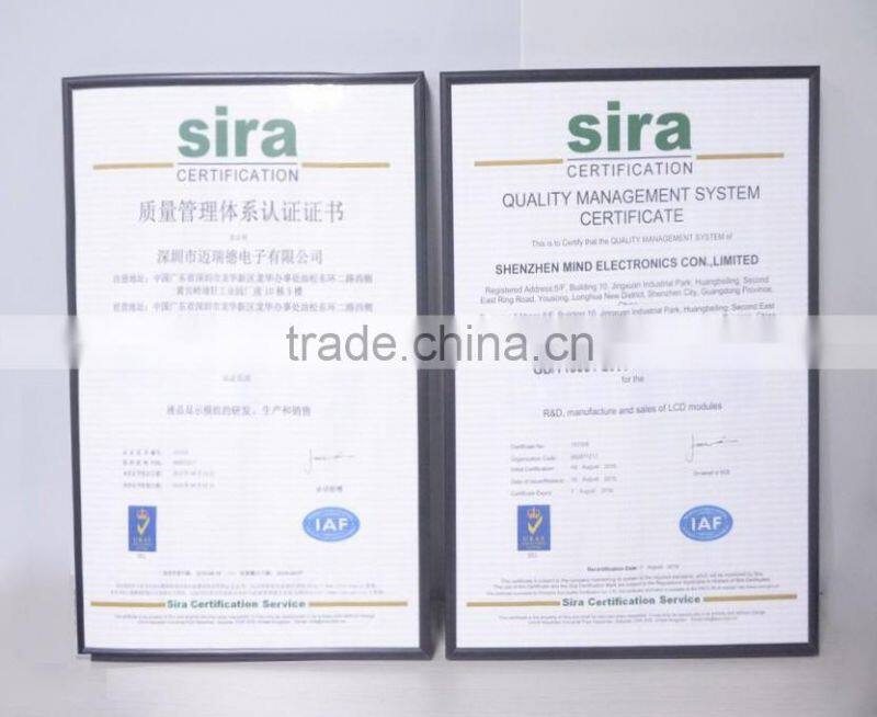 Our company has many years of experience in research, developing and manufacturing. and we also have a professional quality management team . We always persevere with work in the TFT display field and we try to provide excellent products and best service for the customer. Our company passed the certification of IS09001-2008 quality management system certification, and we have high standard purified workshops, automated assembly production line, high precision testing instruments and professional reliable testing equipment for production, etc.