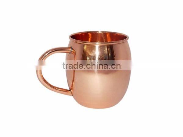 COPPER BARREL MUG 16 Oz. SMOOTH WITH BRASS REGULAR HANDLE