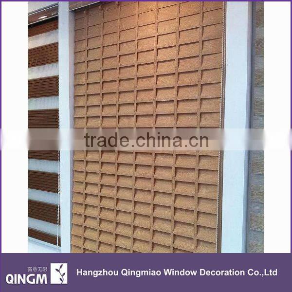 QINGM Stock 100% Linnet Fabric Double Layer Shangri-la Blinds Manual Blind