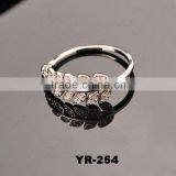 2016 Fashion Jewelry Korean Leaf Design Rhinestone Cross- Opening Ring