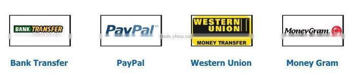 1. We accept Banks Transfer,,Western Union and Alipay.