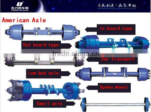 4)axles (American and German, BPW type and FUWA type,spokeaxle, low loader, concave axle),