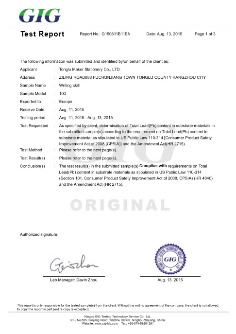 * All of our products are of the highest quality. EN-71and ASTM D 4236 test reports make us enter American and European markets easily.
