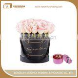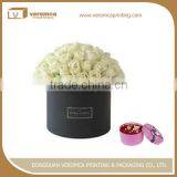 Custom Black Round Box White Rigid Paper Cardboard Flower Gift Box