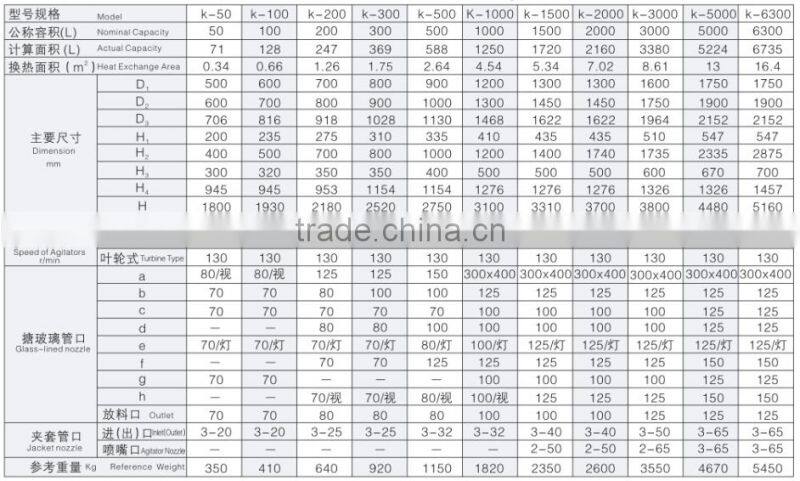 2, Major dimensions of the KF type reactors conform to the National Standard for Glass-lined