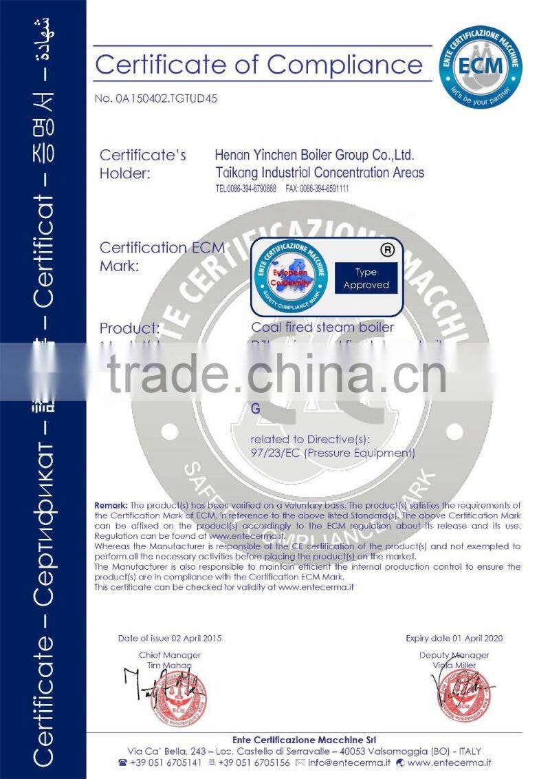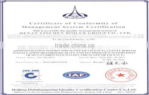 Henan Yinchen Boiler Group Co.,LTD. was founded at the beginning of 2001, which has a registered captical of 51.66 million. Its headquarters is in the industrial district in Fucaolou town, Taikang county of Henan province. The prouction factory is adjacent to Yong Deng high-speed,and the 311 national road is also through this district,so it has very convenient transportation conditions.Besides, it is one of the key leading enterprises which firstly get the National Boiler Manufacturing license. With the manufacturing license qualification of "B" class boiler and "D2"class pressure vessel, it is director of China Industrial Boiler Association, member unit of China Welding Association and the enterprise of emphasizing the contract and credit in Henan province. The products have already passed ISO9001-2000 international quality system certification.