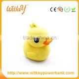 2016 New Cute Gift Yellow Duck Shape Oem PVC Power Bank 2600mah