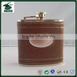 2016 304 Stainless Steel Hip Flask With Brown Leather Wrapping and Funnel