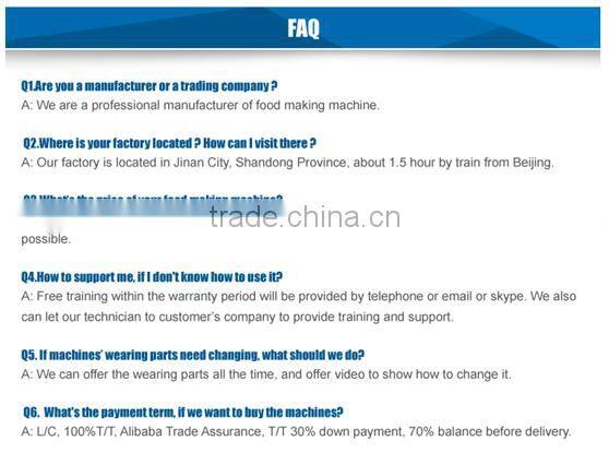 Since 1996, Jinan MT Machinery & Equipment Co.,Ltd is always the professional manufacturer and the model company for advanced and high efficient extrusion food machinery in this field. MT Company congregates an expert team with ten-year experiences in this extrusion machine industry, not only working hard to constantly researching extrusion technology, but also exploring food processes in order to benefit our clients producing creative food. conact person(Grace)0086-13698611951
