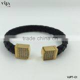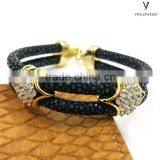 Popular Black Stingray Leather Bracelet With Gold Plating Over Sterling Silver Inlaid Zircon Stone