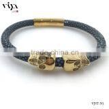 Hot Sales Genuine Double Skull Blue Stingray Leather Bracelet Quality Choice