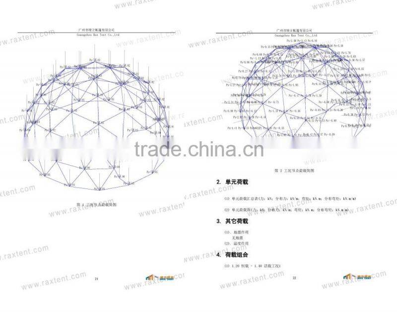 Yes. Our geodesic dome tent has passed the engineering loading pressure tests ensuring a full security under degree of 13 typhoon. It has gained the Australia structural engineering certificates. Besides, the PVC fabric used for roof covers and sidewalls has passed the fire tests and gained the flame retardant certificates issued by America, Australia, New Zealand, and Britain.