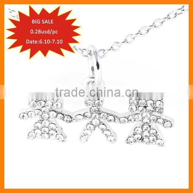 Big Sale Small MOQ Fashion Jewelry Zinc Alloy Boy and Girl Pendant Necklace With Rhinestone