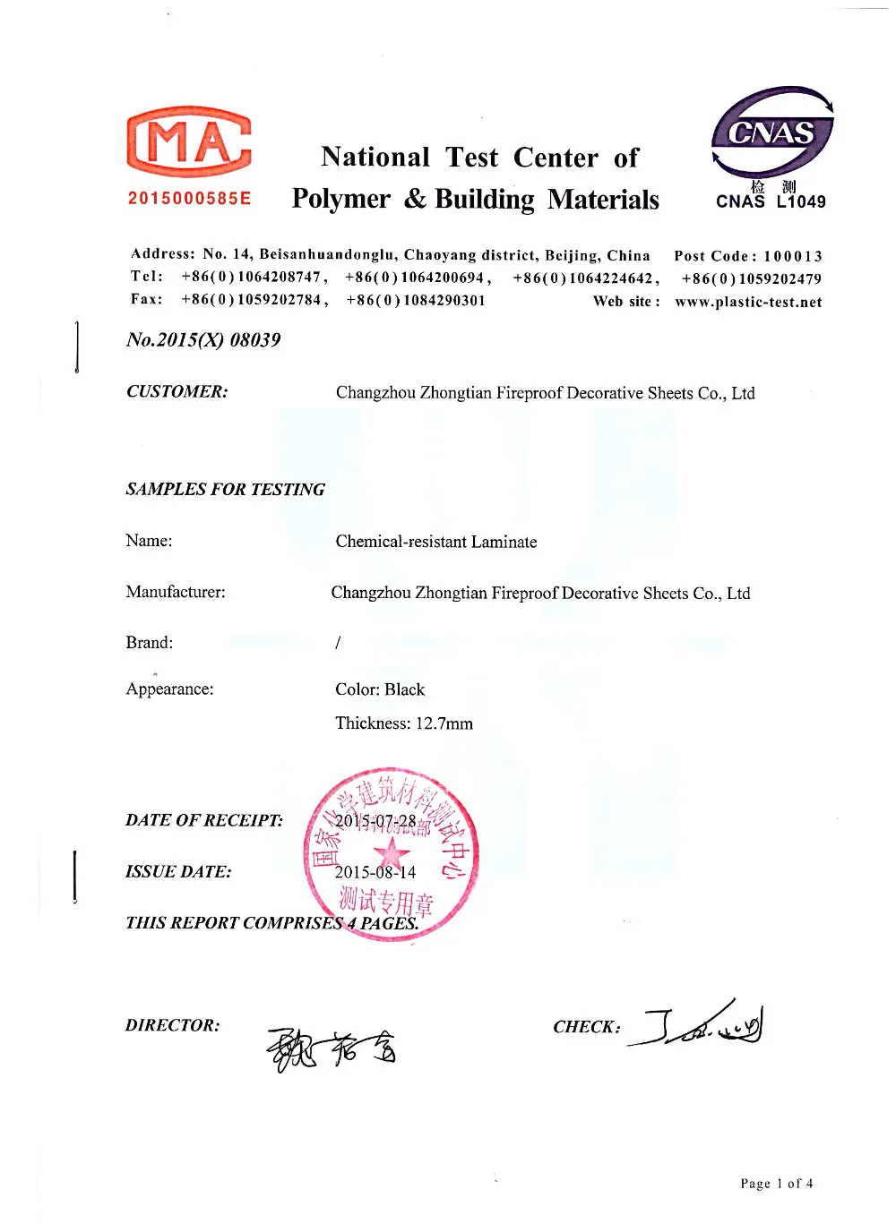 - Changzhou Zhongtian Fire-Proof Decorative Sheets Co., Ltd.