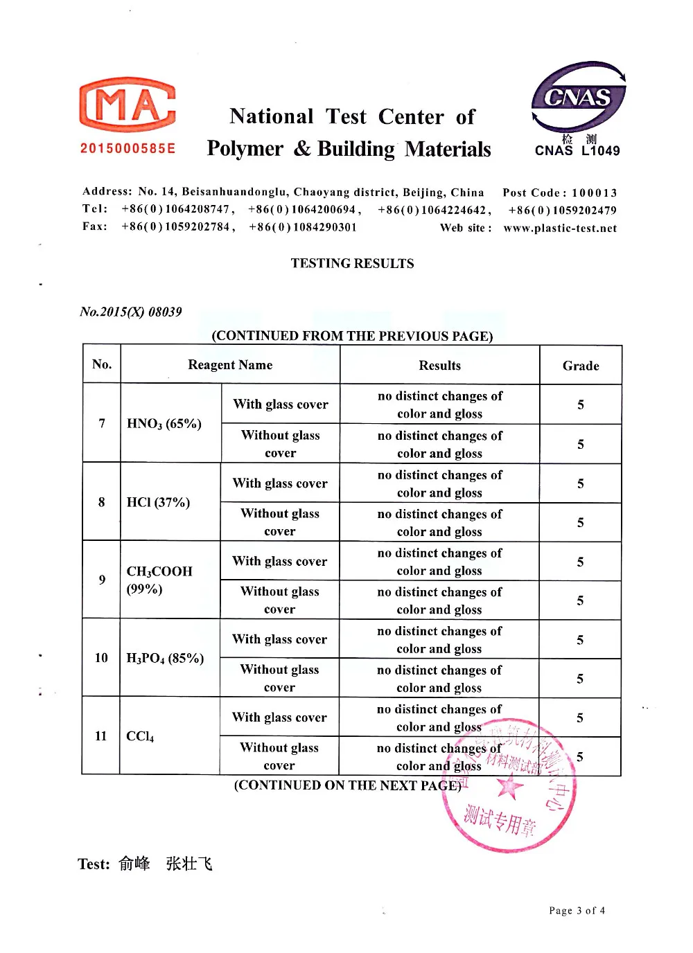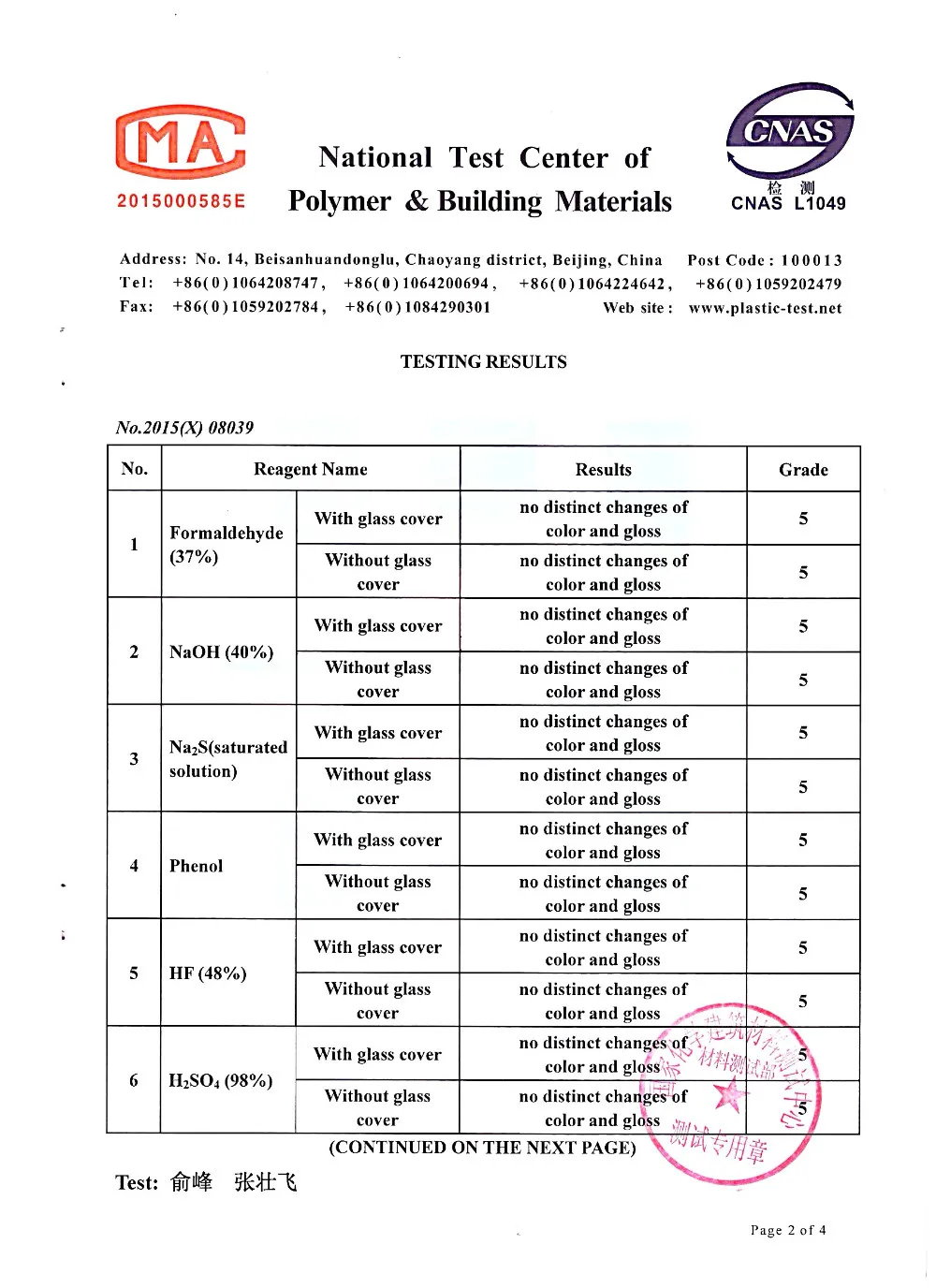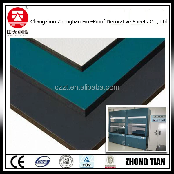Chemical resistant laminate resistant to all kinds of acid and alkali content.So it widely used for work tops and cabinet surfacing in laboratories.