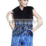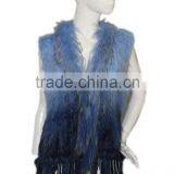 QD70909 Knitted Raccoon Dog Fur Vest Ombre Blue Color Korea Dress Fur Gilet